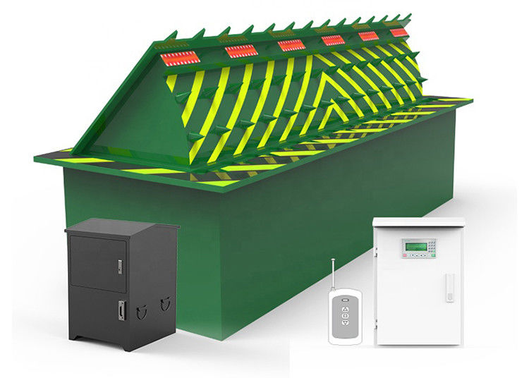 This 380V hydraulic road blocker with yellow warning reflector and rustproof lacquer finish is designed to destroy the suspension of intruding vehicles and prevent forcible penetration into secured areasSetiap upaya kendaraan yang kuat untuk melanggar penghalang ini mengakibatkan kehancuran lengkap poros kendaraan.